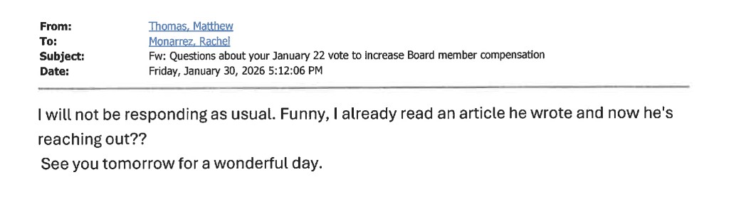 OUSD Superintendent Rachel Monarrez forwarded our e-mail to Trustee Thomas (apparently his district e-mail bypasses him and goes straight to the superintendent).